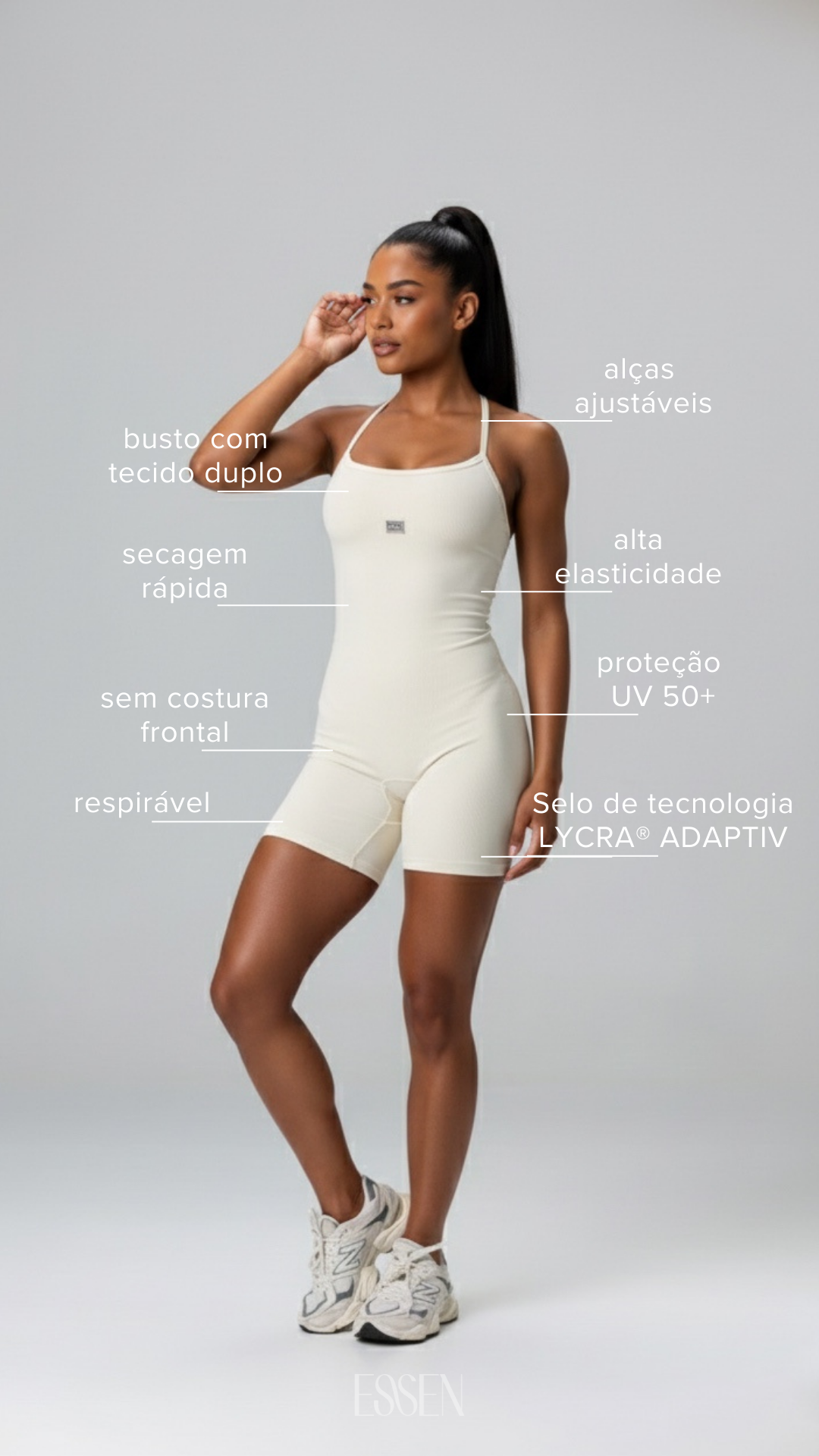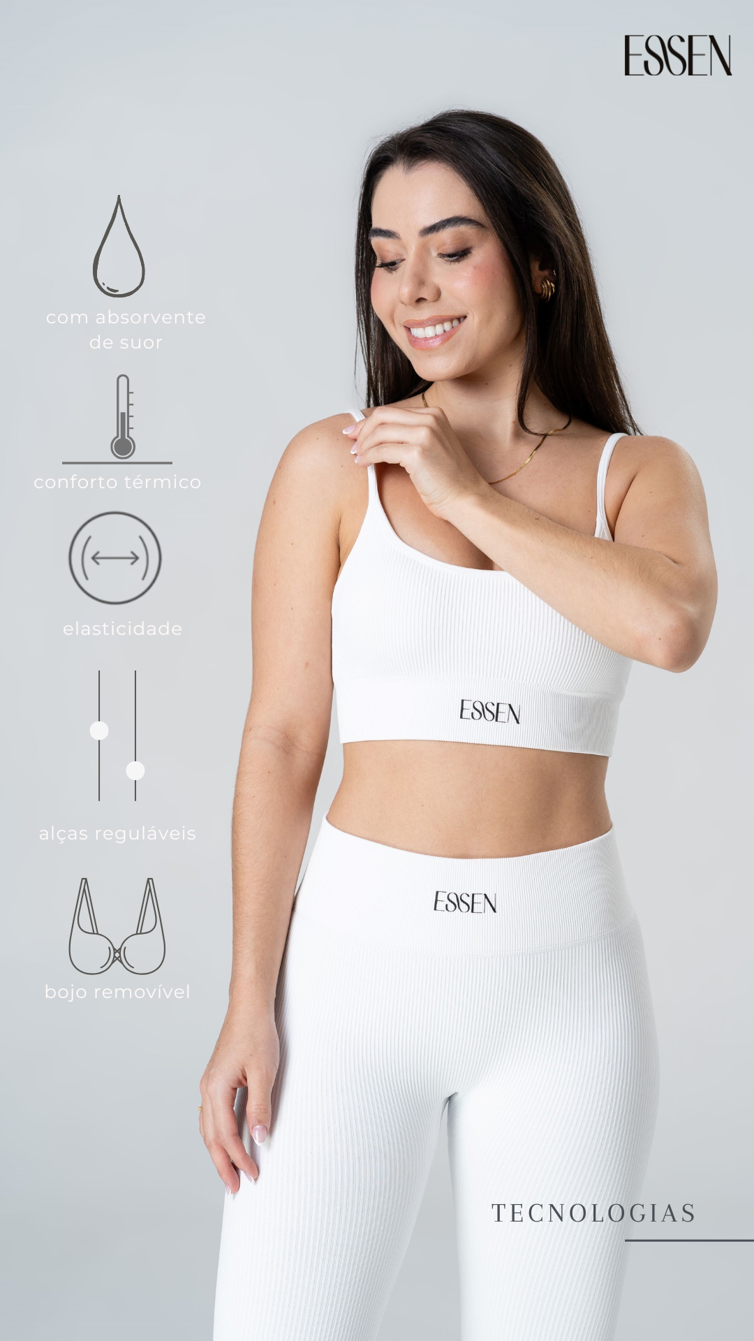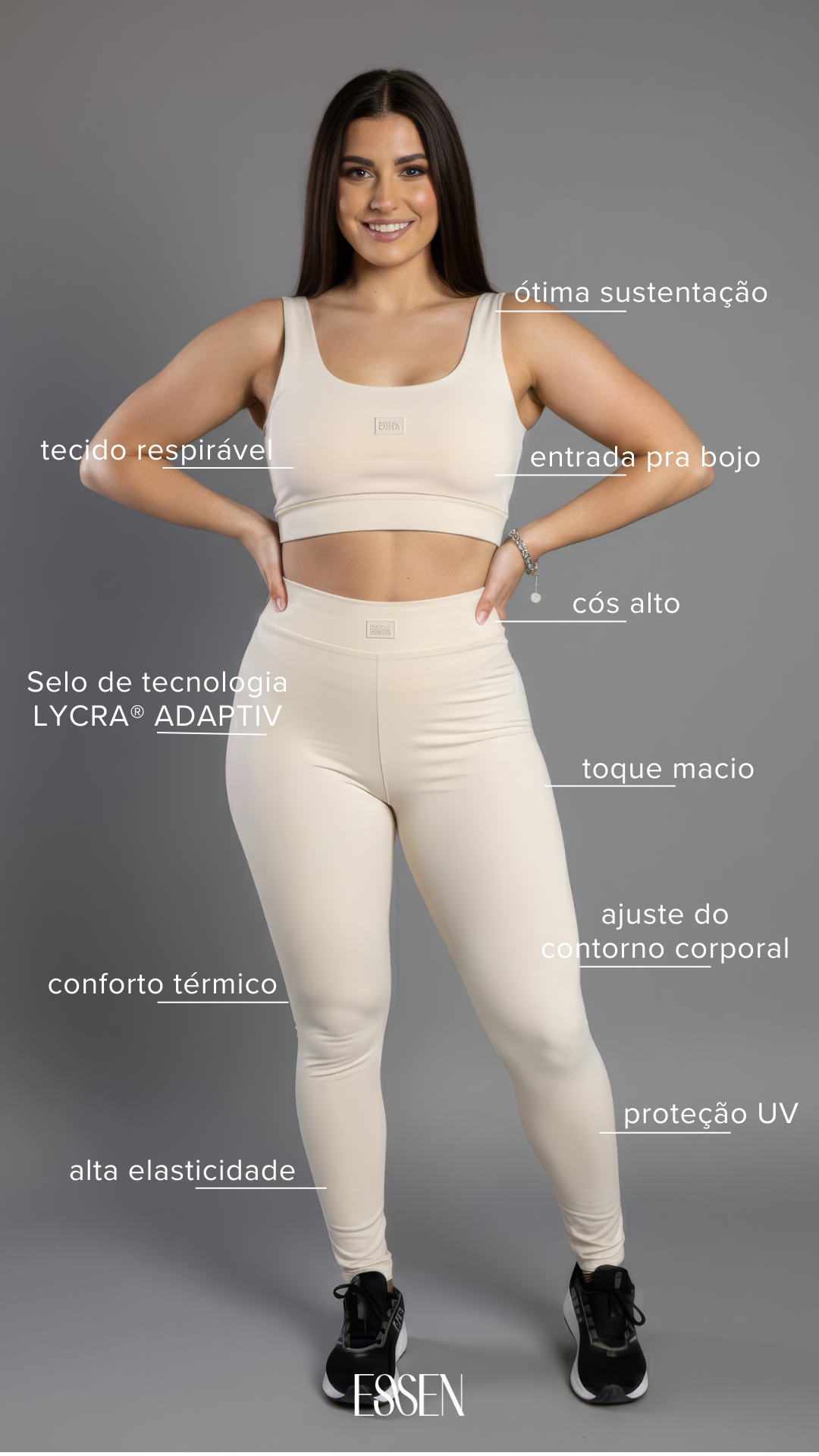 Explore todas as coleções de moda fitness feminina ESSEN, desenvolvidas com foco em conforto, performance e estilo atemporal. Encontre leggings, tops, conjuntos, macaquinhos e peças essenciais com tecidos tecnológicos, modelagem que valoriza o corpo e cores versáteis para treinar e viver com liberdade. Coleções pensadas para acompanhar a rotina real, em todas as fases do dia.